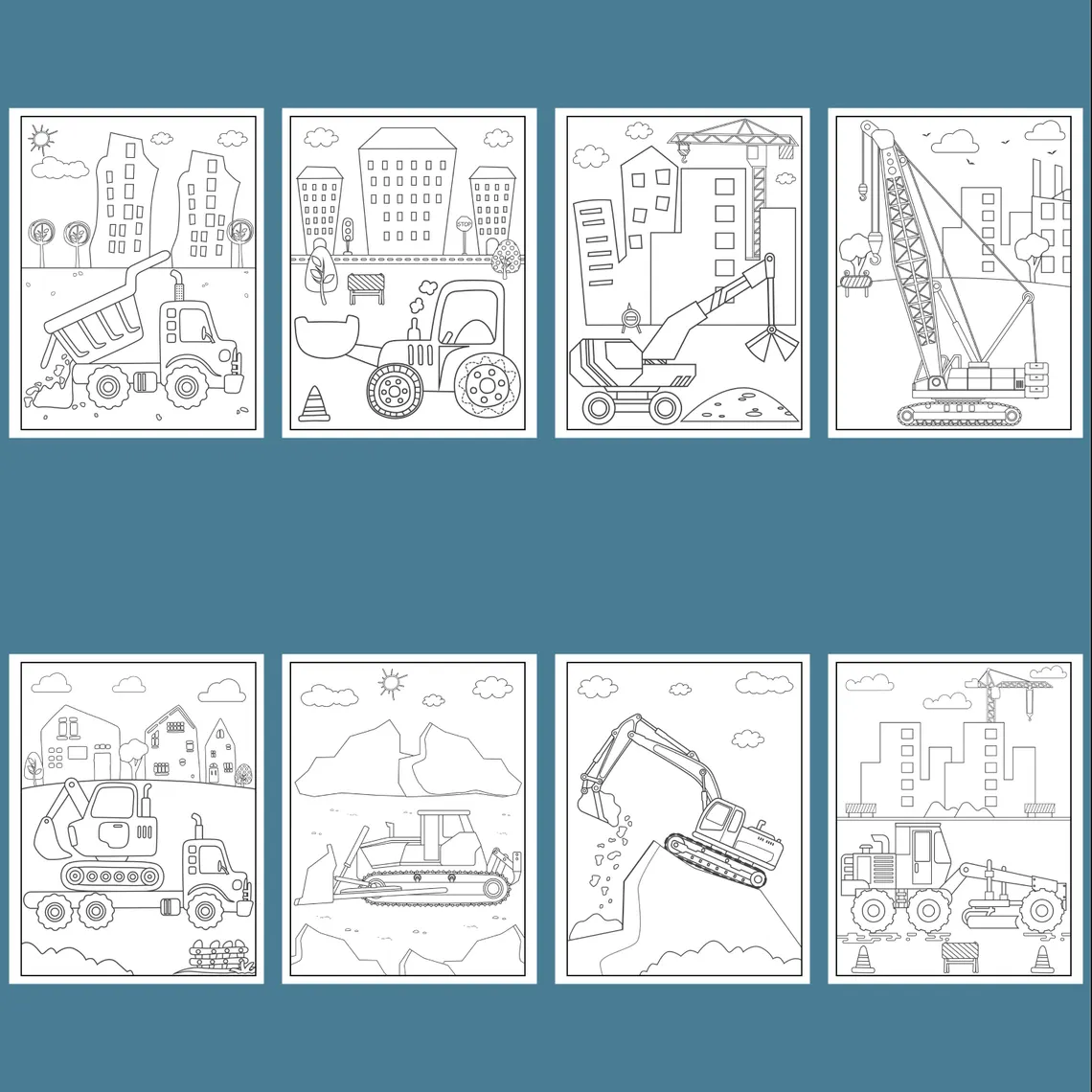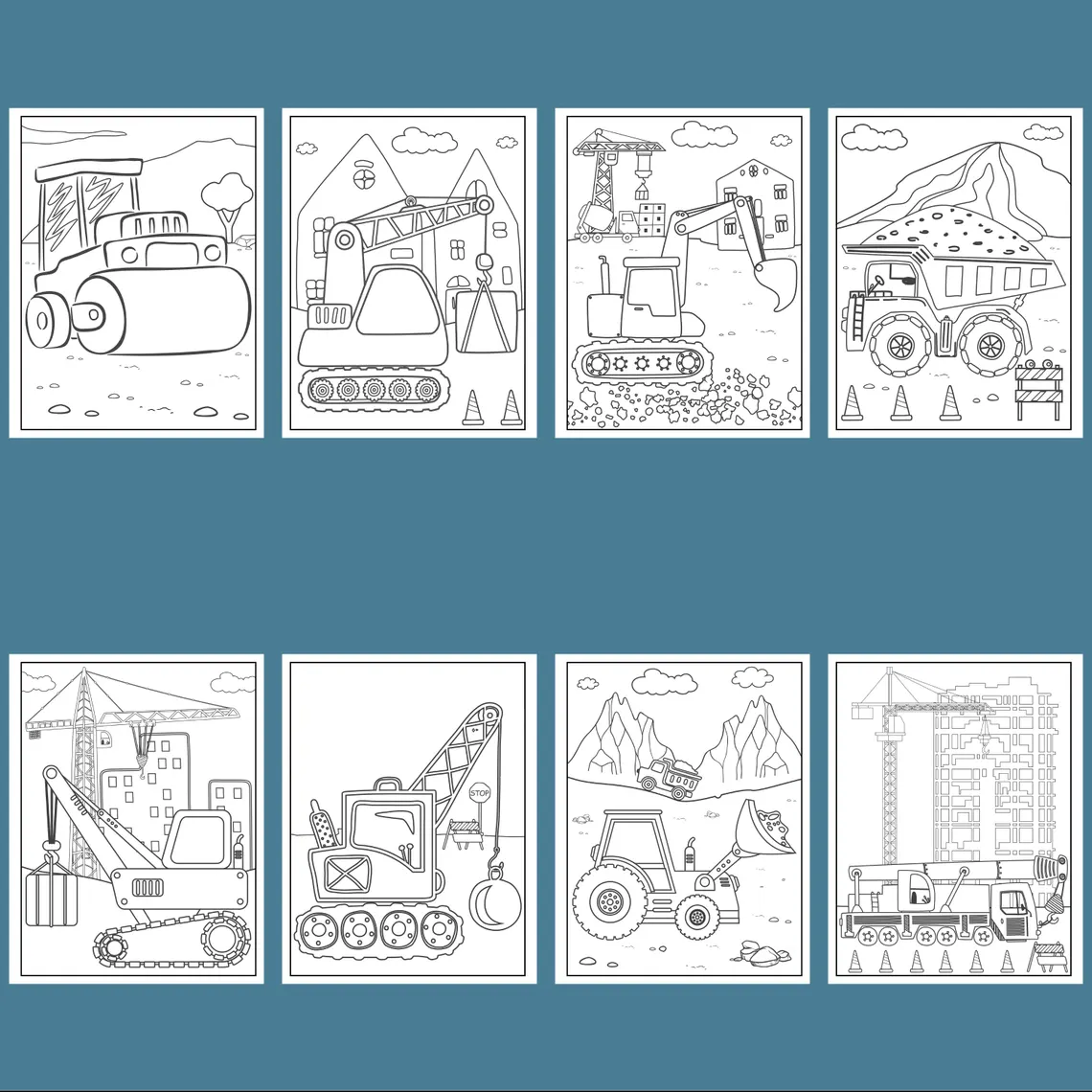 Let your child explore their creativity with this fun-filled digital coloring book! Featuring 40 high-quality illustrations of construction vehicles like excavators, cranes, trucks, and more – this printable set is perfect for kids who love big machines!