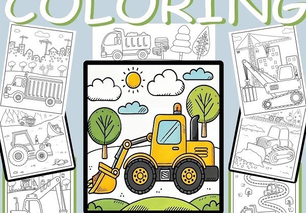 40 Printable Coloring Pages 🧩 for Kids – Excavators, Cranes, Trucks & More 🚜